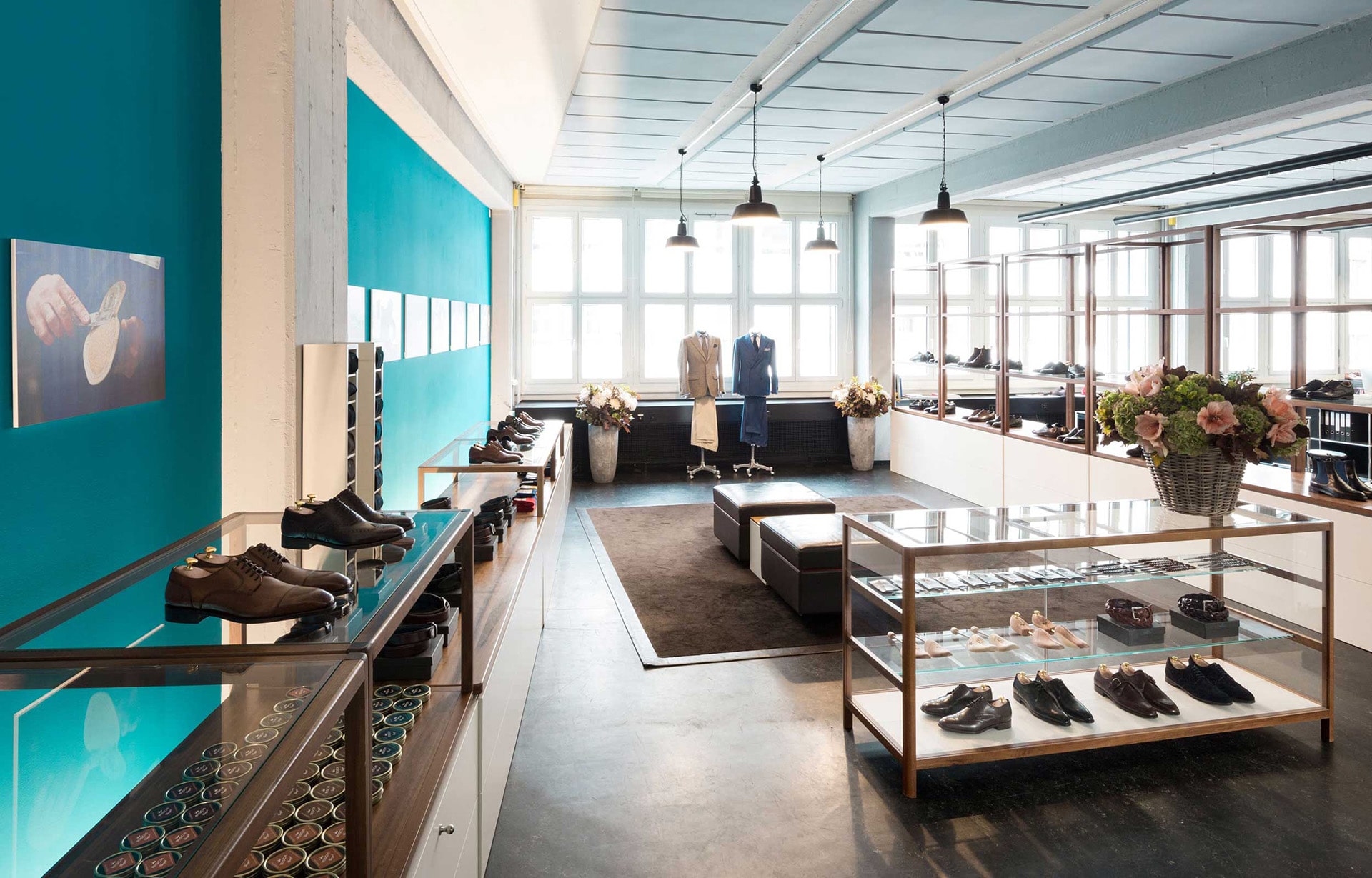 Our flourishing partnership with Risch bespoke shoe makers allows us full use of their beautiful showroom in Uetlihof, the centre of Zurich’s financial district.
